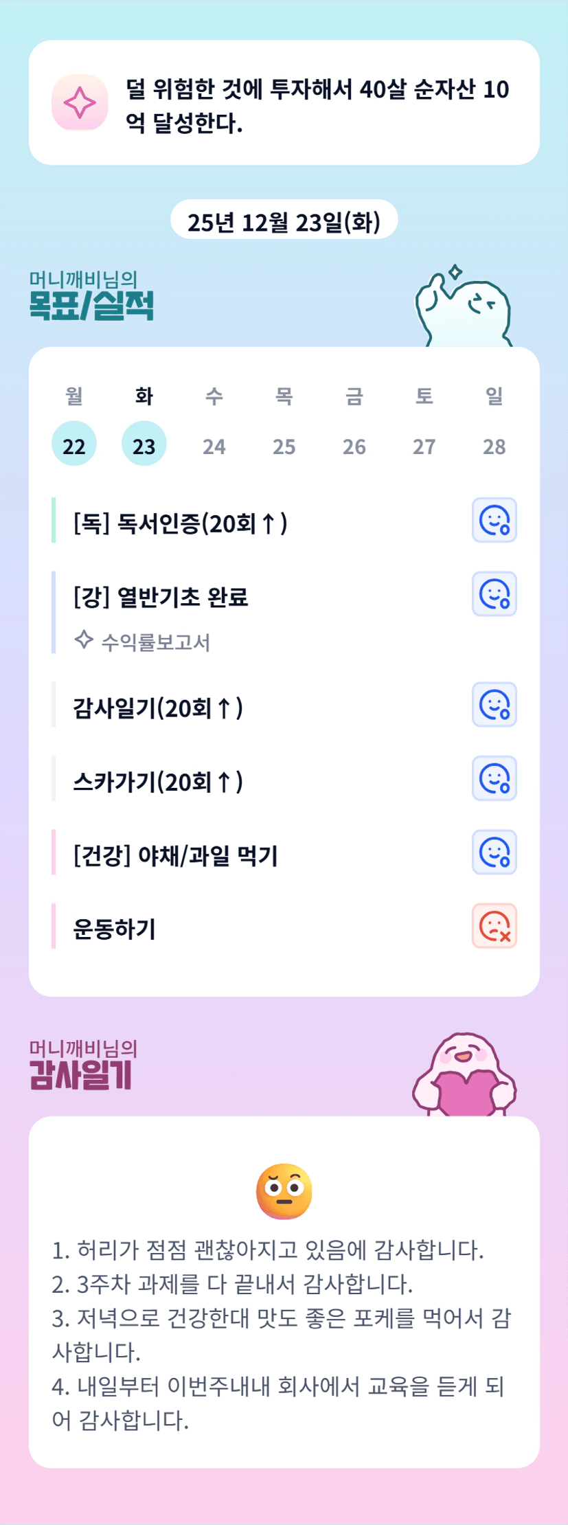 허리가 점점 나아지고 있으시다니 너무 다행이고 좋으네요~ ^^ 원씽을 지키신 머니깨비님 짱!!