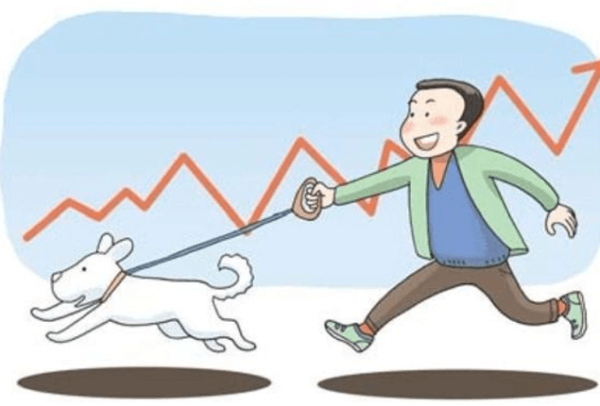 주인이 천천히 1킬로미터를 걷는 동안 주변을 달리며 돌아다닌 개는 4킬로미터를 산책했다. 여기서 주인은 경제이고 개는 증권 시장이다. 경제는 지속적으로 발전하지만 한 걸음 또는 두 걸음 멈추기도 하고 때때로 뒷걸음질 치기도 한다. 장기적인 관점에서 보면 경제와 주식시장은 같은 방향으로 발전하지만 그 과정에서 때때로 정반대인 방향으로 나아가기도 한다.