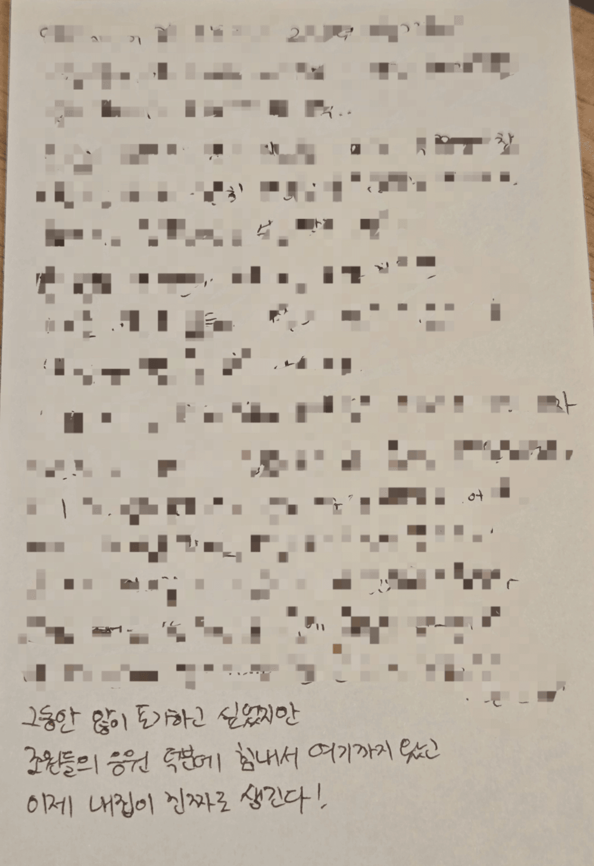 마지막에 1년 후의 나에게 해주고 싶은 말을 쓰는 내용이 있었는데 원래 이런거 엄청 오글거려하지만 마음이 너무너무 힘들어서 털어놓을 겸,스스로 다짐할 겸,앞으로의 계획도 세워볼 겸 쓰고나니 마음이 제법 많이 편해졌다(그동안 밥도 못먹고 잠도 못자고 그랬는데 오늘 저녁에야 드디어 다시 식욕이 조금이나마 생겼음..)