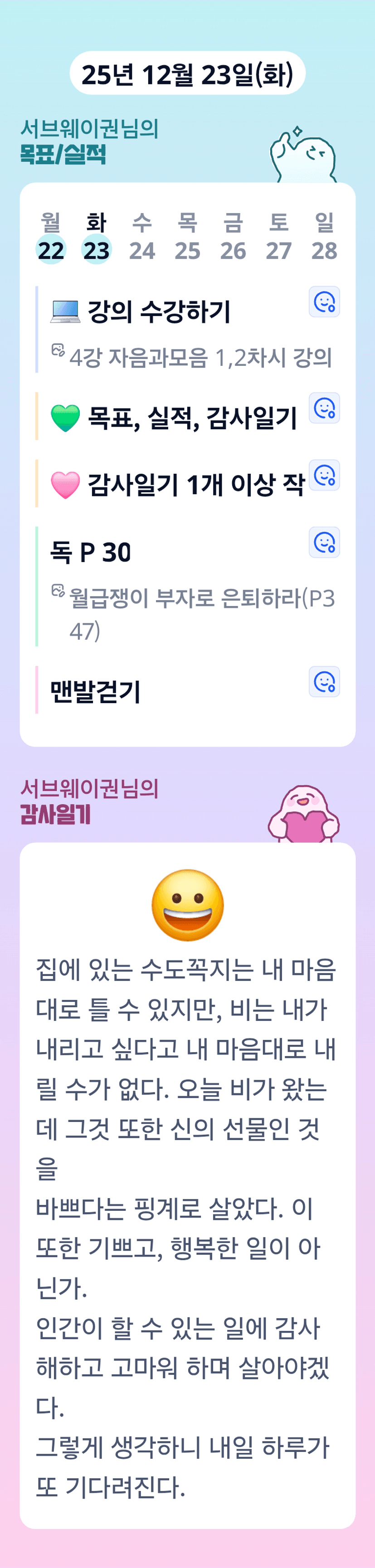 감사하는 마음이 가득한 권님 오늘도 고생 많으셨어요 언능 나으셔요💜
