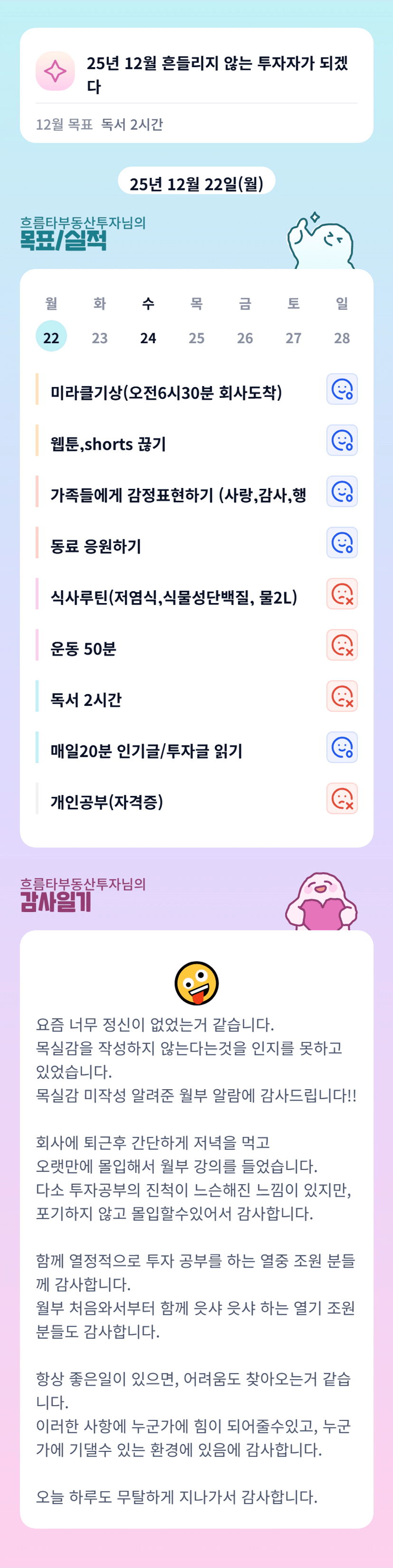 포기하지않고 한다. 계속 그냥 한다가 진짜 중요한 마인드인거 같아요👍👍지금도 충분히 잘 하고 계십니다😊
