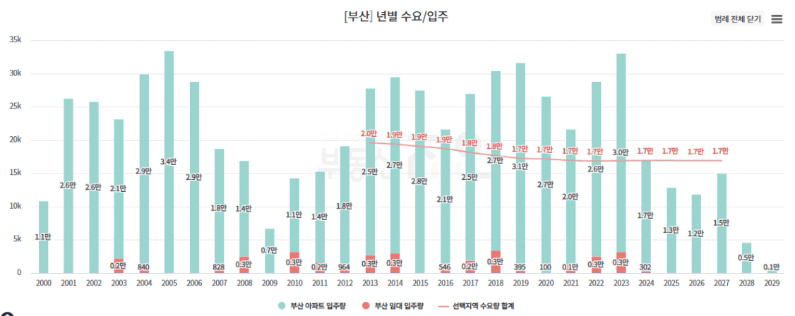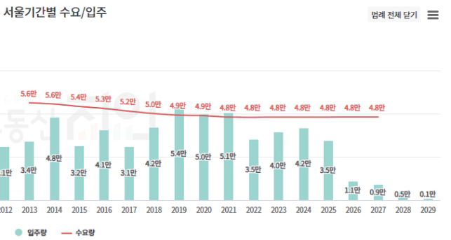 전체적인 공급 물량 '25년 이후 부족에 들어서며 급감하는 상황