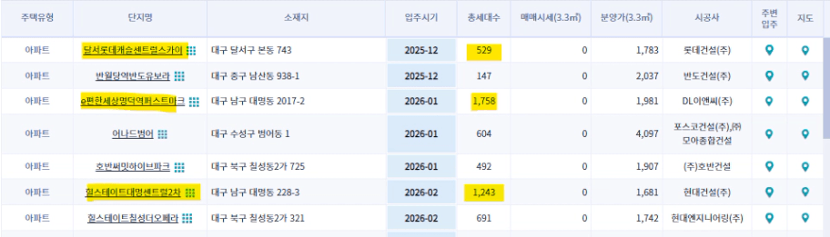 . 대구 남구 대명동 힐스테이트대명센트럴2차 / 26년 2월 / 1,243^ 세대 입주