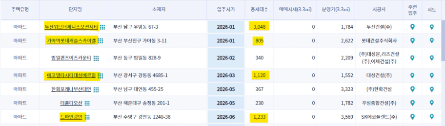 . 부산 남구 우암동 두산위브제니스오션시티 / 26년 1월 / 3,048^ 세대 입주