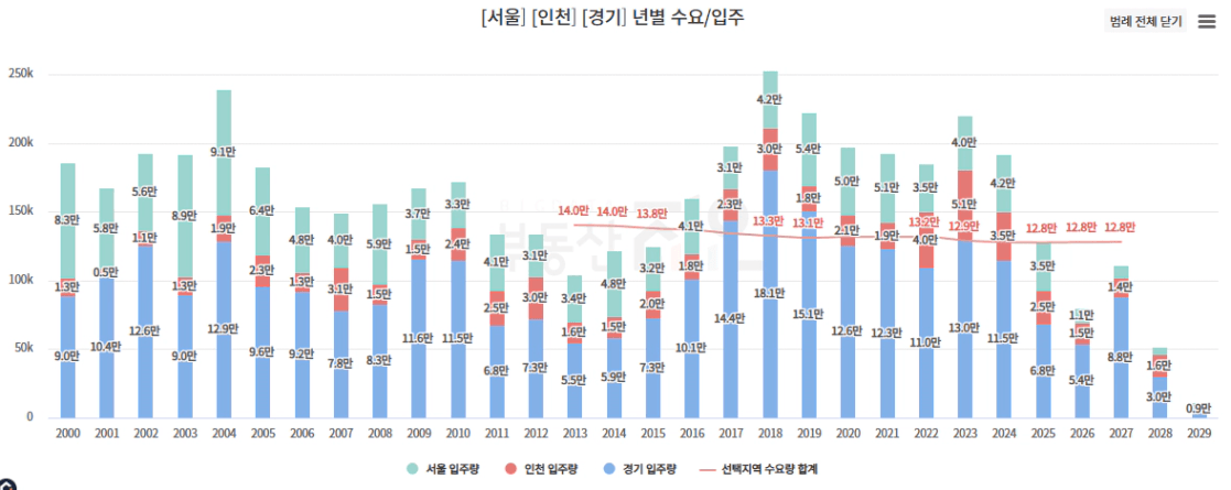 ‘25년 이후 공급 물량 부족, ’27년에 초과 수준으로 넘어오지만 수도권 전체 물량 고려 시 많은 수준 아님