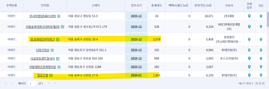 . 서울 송파구 잠실래미안아이파크 / 25년 12월 / 2,678 세대 입주