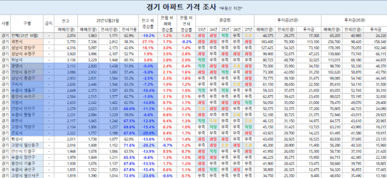 과천, 분당 등 서울 뺨치는 경기도 제외