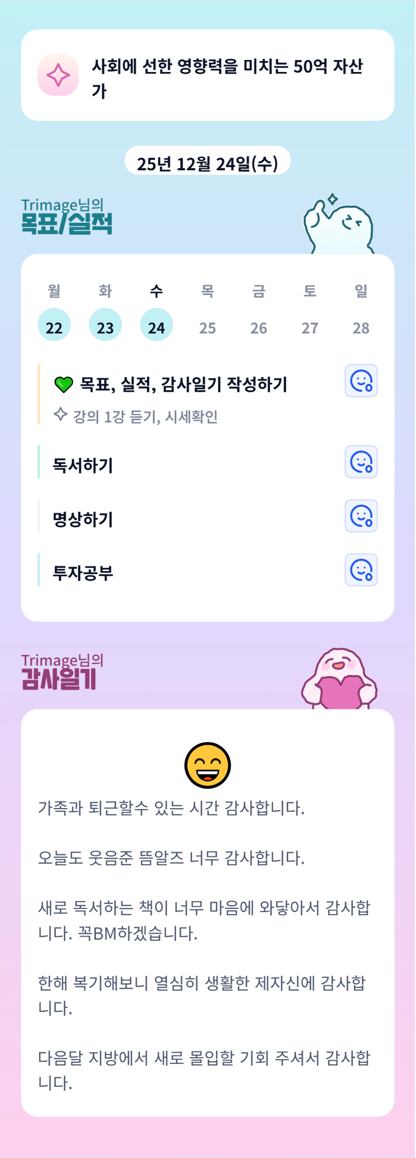 진짜 열심히 사신 올한해가 아니라 마제님은 평생을 그리 성실히 열심히 사셨을거 같애요👍👍 담달 대전가시는군요 마제님의 1월 지투기도 응원하겠습니다💕