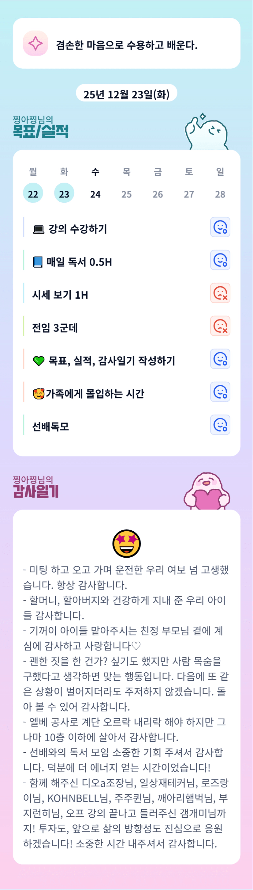 찡아찡님, 오랜만이에요♡디오조장님 조에 독모 가셨군요! 디오조장님이 네잎 클로버 선배님께 선물받았다고 사진 올리셔서 봤어요!사진보니 완전 설레는 독모여서 슨배님이 누구실까 했습니돠 ㅎㅎ 찡아찡님, 너무 좋은 선배님 🥰