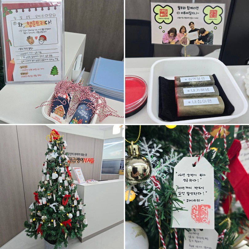 더불어 행운트리를 준비해 주시고, 주우이님과 자음과 모음님께서 직접 새기신 도장까지 마련해 주셔서 특별한 경험을 할 수 있었습니다. 행운트리에 내년 상반기 목표와 10억 달성에 대한 확언을 남기며 스스로에게 다짐하고 좋은 기운을 담아 올 수 있었던 시간이었습니다. 이번 오프 강의는 강의 듣는 것을 넘어 마음가짐과 각오를 다시 다지는 계기가 되었습니다.