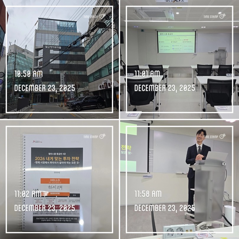 간단한 인사와 몇 마디 대화를 나누며 자연스럽게 친밀감을 형성하신 뒤 본격적인 강의가 시작되었습니다. 이번 강의는 실전 투자에 바로 적용할 수 있는 내용들로만 꽉 차 있어 저뿐만 아니라 열중반에 함께한 모든 분들께 큰 도움이 되었을 것이라 느껴졌습니다. 이론에 머무르지 않고 실제 현장에서 어떻게 판단하고 움직여야 하는지를 차분하게 짚어주셔서 더욱 의미가 깊었습니다.
