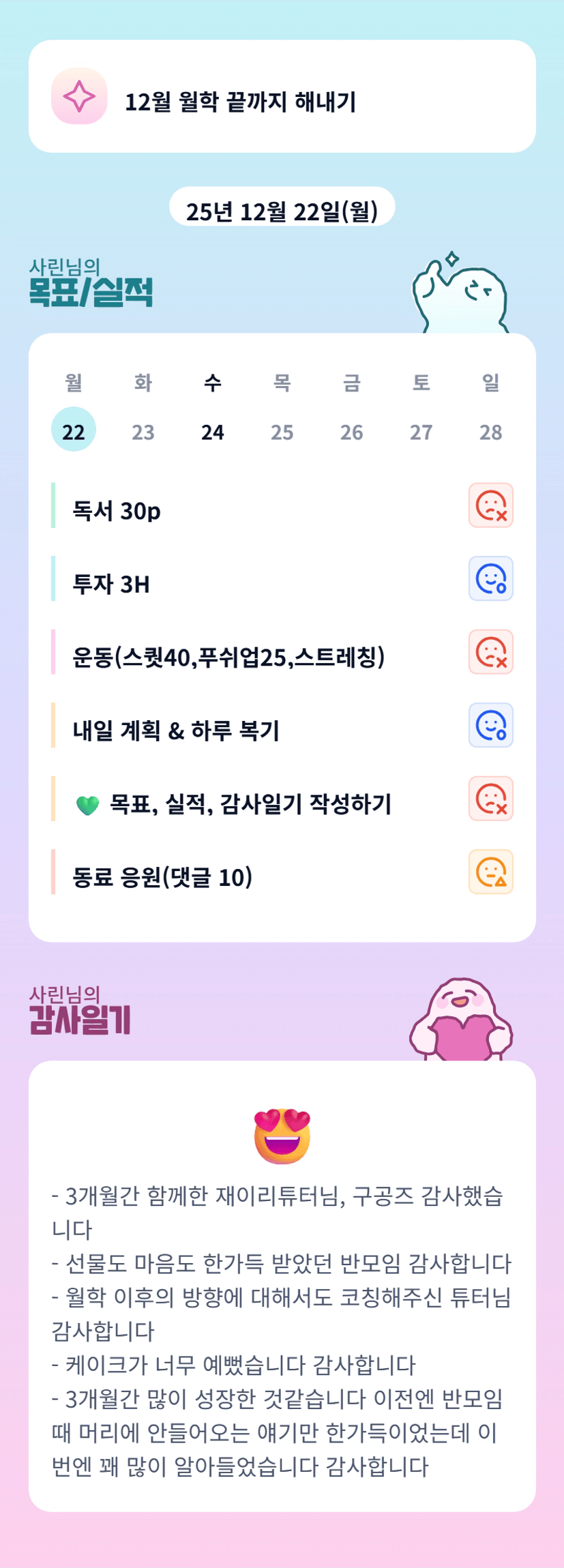 얼ㅋ 얘기 다 알아들은 성장사린⭐️ 3개월동안 고생 많으셨어요!