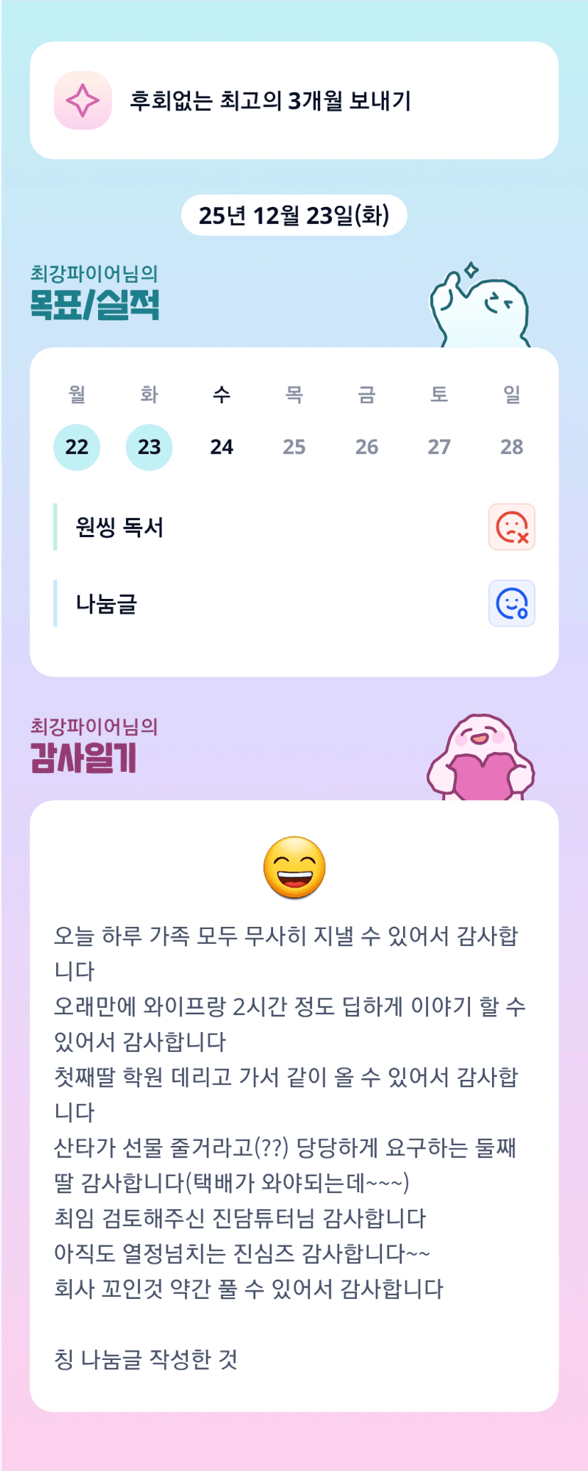 조장님 3개월간 너무 고생 많으셨어요!!