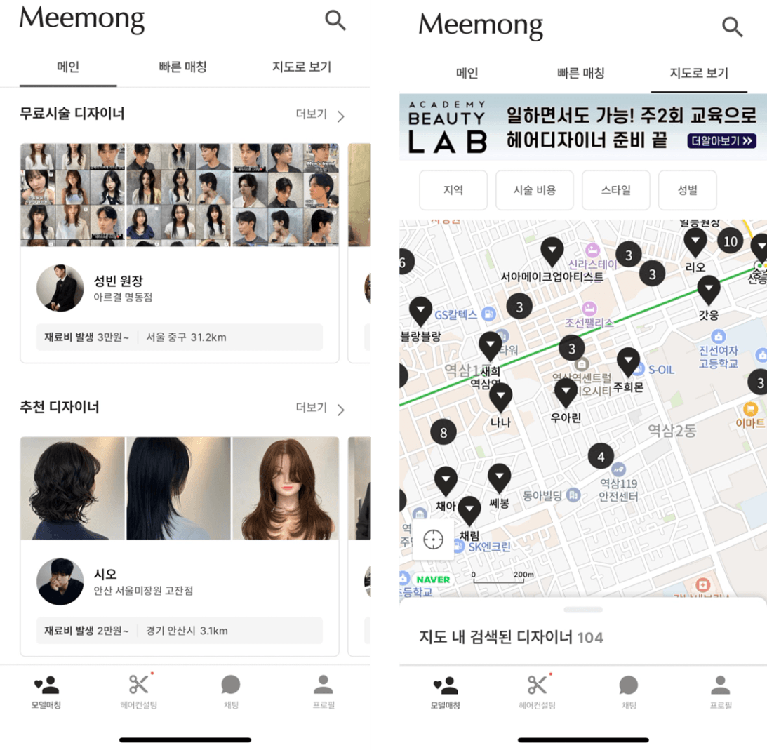 헤어 디자이너와 일반인을 연결해주는 서비스로