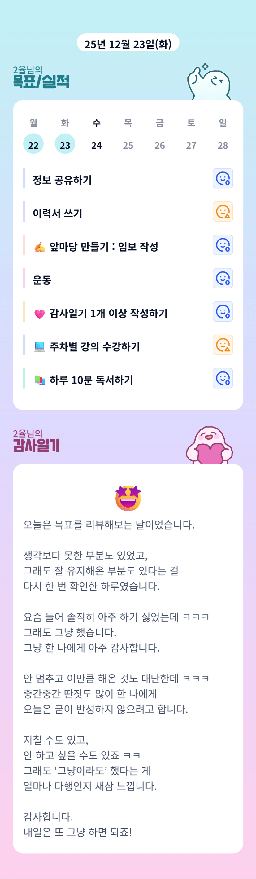 암요~너무 잘하고 계신걸요👍👍 셀프칭찬 마구마구 해주기요💕