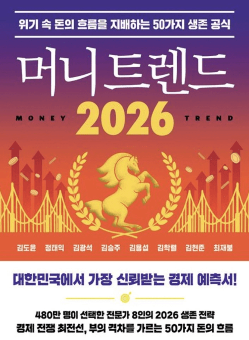2026년 머니트랜드를 읽은 소감은 AI, 유동성공급확대, 비트코인, 서울수도권공급부족등이 주요 키워드일 수 있겠다는 생각이 들었다 주요 부분은 이해할 수 없었지만, 전반적으로 2025년 8월까지의 현상을 보고 전문가들이 내년도 전망을 하는 것이다 보니 트랜드가 갑작스럽게 바뀌는 부동산의 규제정책은 빠지게 되었고, AI, 비트코인, 주식등은 전반적으로 내년도 흐름을 예측할 수 있었던 좋은 글이였던거 같다