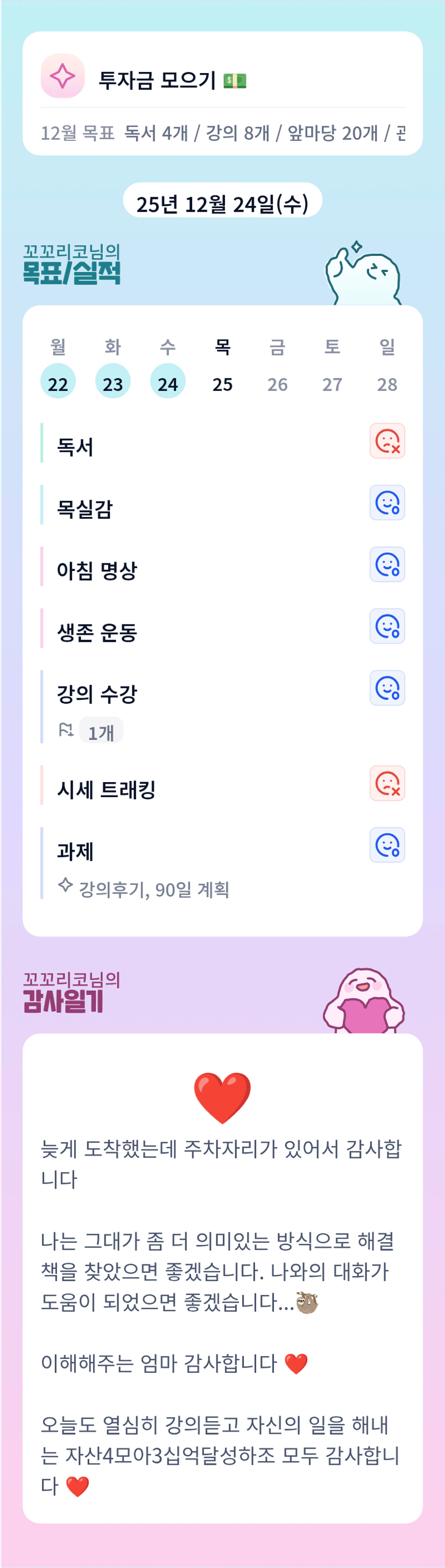 강의 듣고, 어머니의 이해도 받고..어제 하루도 고생 많으셨어요♡