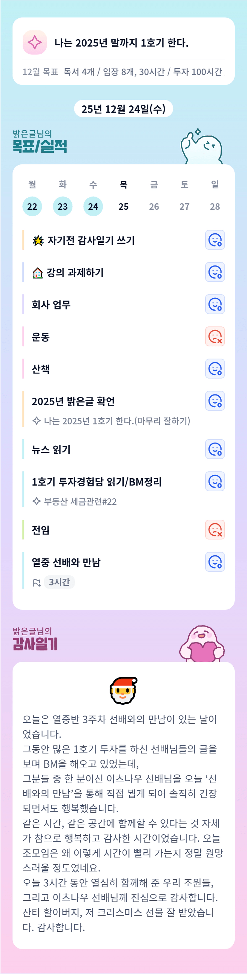 밝은글님 오늘도 고생많으셨습니다! 😊 메리크리스마스!🎄