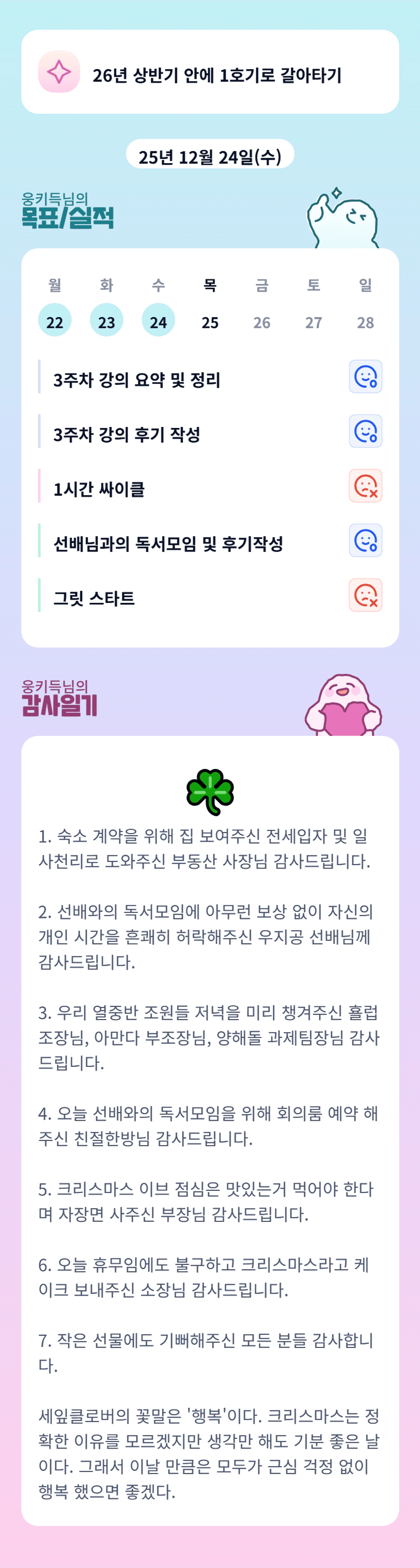 크으 키득님 따수운 마음 넘 좋네요! 오늘 좋은 하루 보내시길 바랄게용🫶