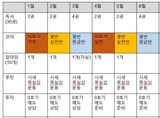 2. 독서 16권 & 매달 강의(실전반 꼭 가기) & 앞마당 5개 & 조장 지원