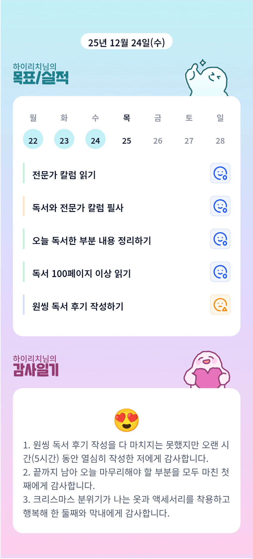 오우~ 5시간!! 저는 거의 6시간에 걸쳐서 겨우 독서 후기 완료했어요ㅎㅎ 리치님도 조금만 더 힘내시고 행복한 크리스마스 보내시길 바랄게요 🎄