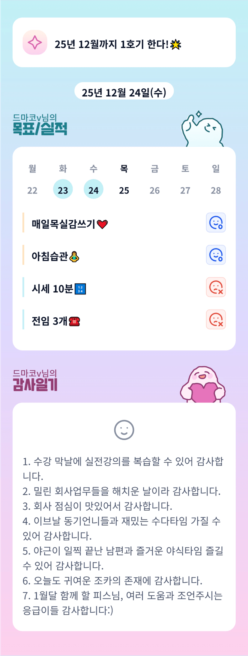 마코님~~ 이브를 알차게 보내셨군요 ^^ 25년도 넘 고생많으셨습니다. 26년도 힘차게 목표를 향해 파이팅해요 우리 ^^
