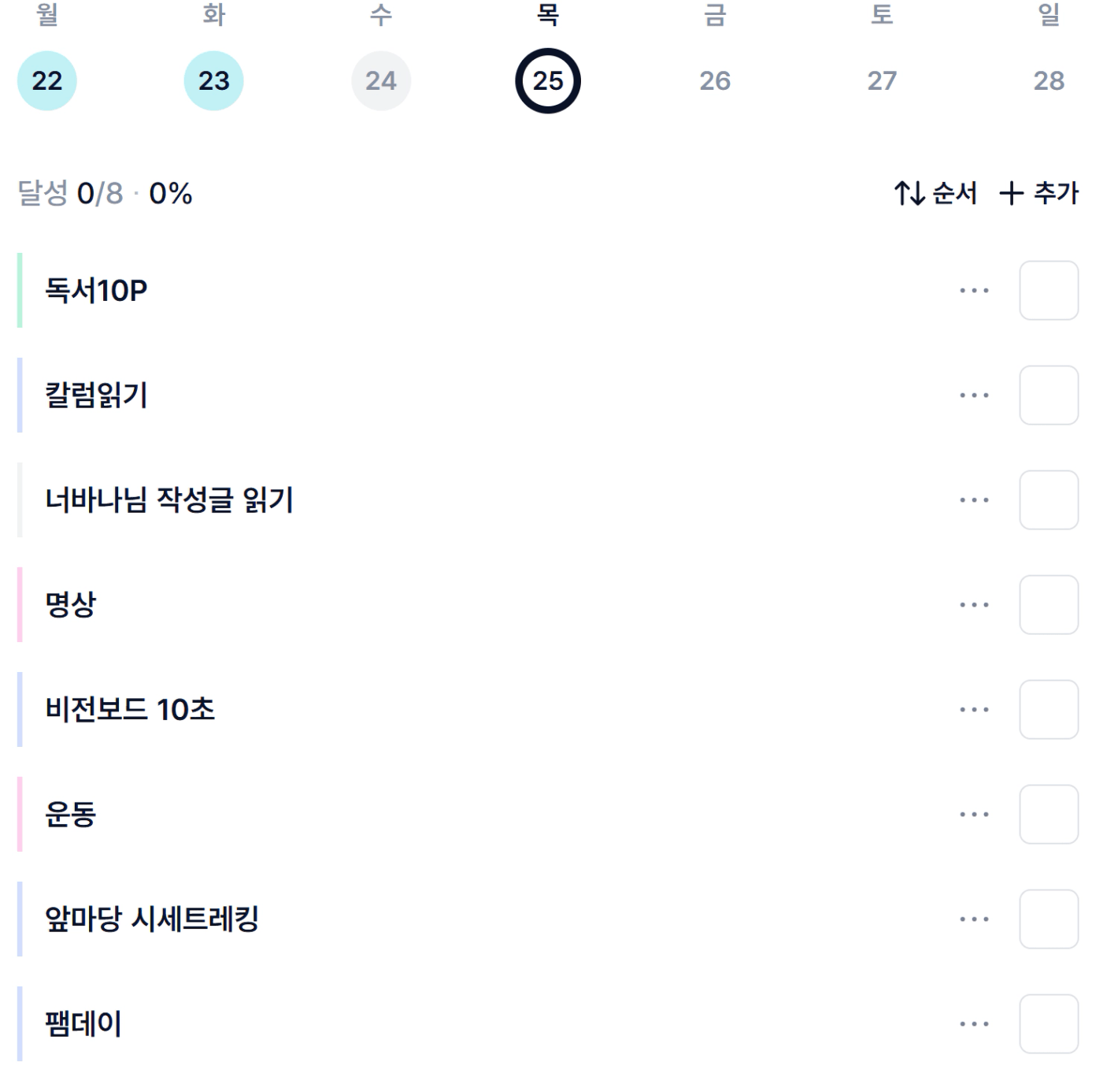 나는 건강한 사람이다.나는 부단히 노력하는 성실한 사람이다.나는 2025년 앞마당 10개를 만든다.나는 2026 3호기 투자한다.나는 2028년 4호기 투자하고, 순자산 15억 달성한다.나는 2030년 5호기 투자한다.꾸준함은 성공의 최고 덕목이다. 나는 꾸준히해서 2035년 30억 부자가 된다.나 우가행은 해내는 사람이다.나는 한다.나는 해낸다.나는 반드시 된다.