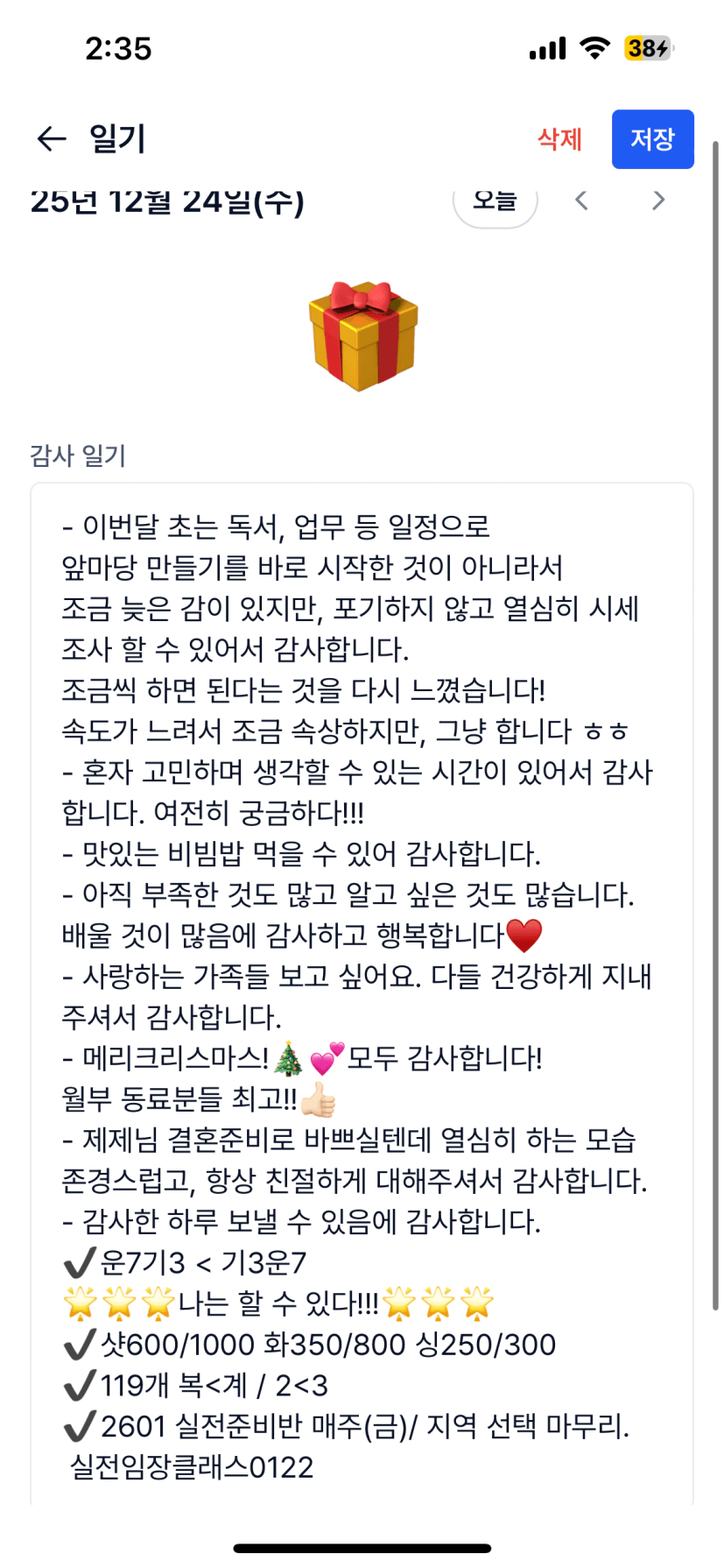 희야님 꾸준하게 해나가시는 모습 너무 멋지세요^^ 앞으로가 더욱 기대되는 희야님을 항상 응원합니다. 오늘도 행복한 성탄절 되세요 !