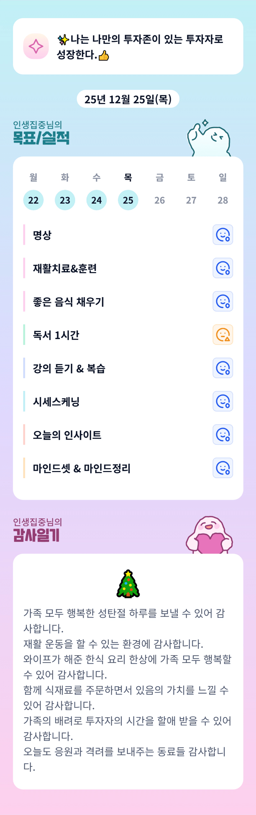 크리스마스 즐겁게 보내시고 투자 활동도 하셨네요~ 수고 많으셨어요 ^^