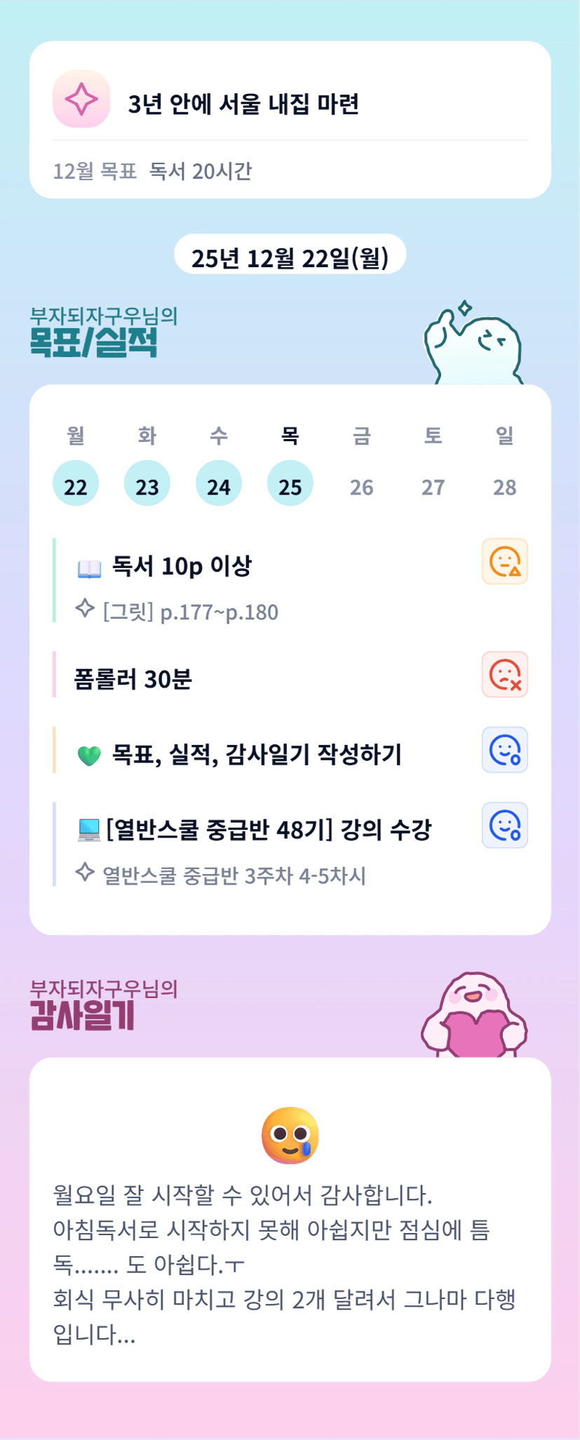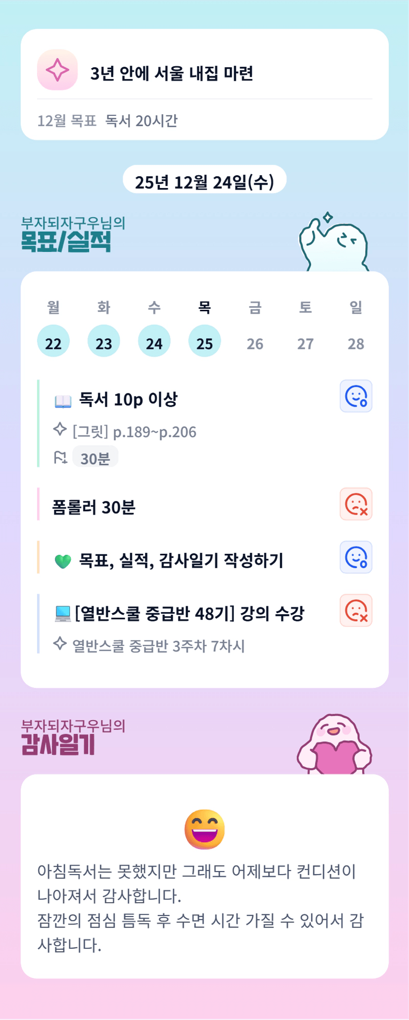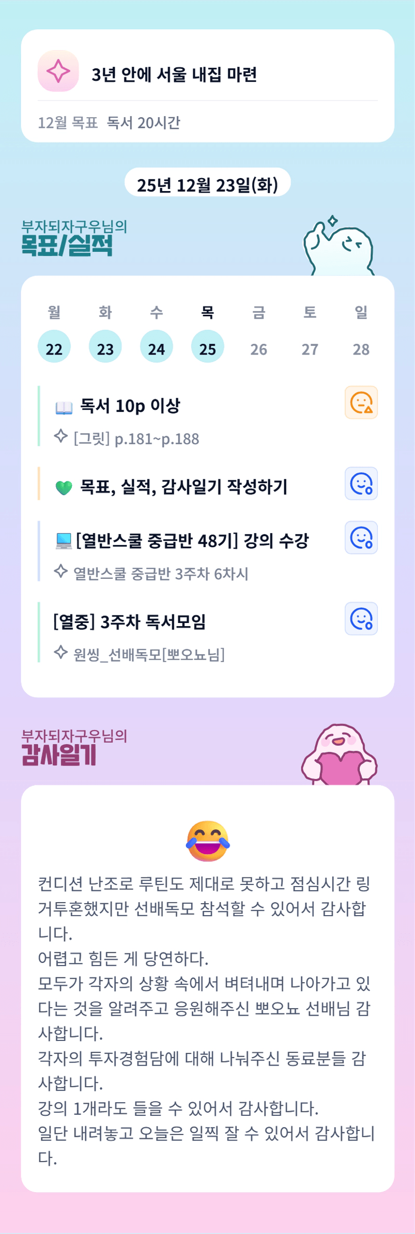 부자님 엄청 열심히 달려오셨네요~~!! 부자님에게 칭찬 마니마니 해주세요!