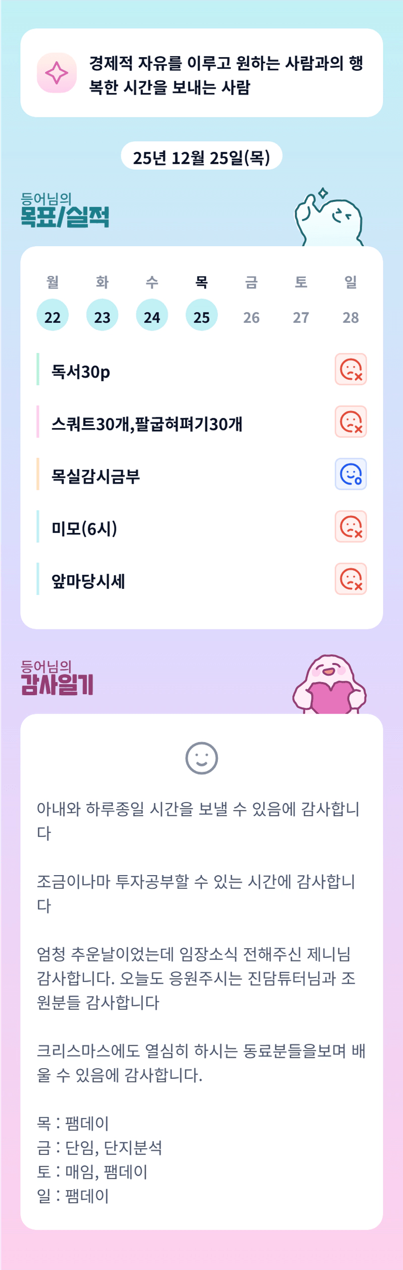 유디 튜터님 오프강의 좋았을 것 같아욤👍👍 클스마스 팸데이까지 행복한 휴일 보내셨길 바랍니당~오늘도 뽜이팅입니당😆😆