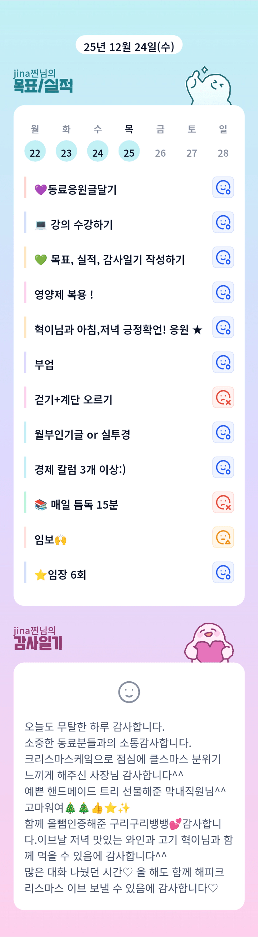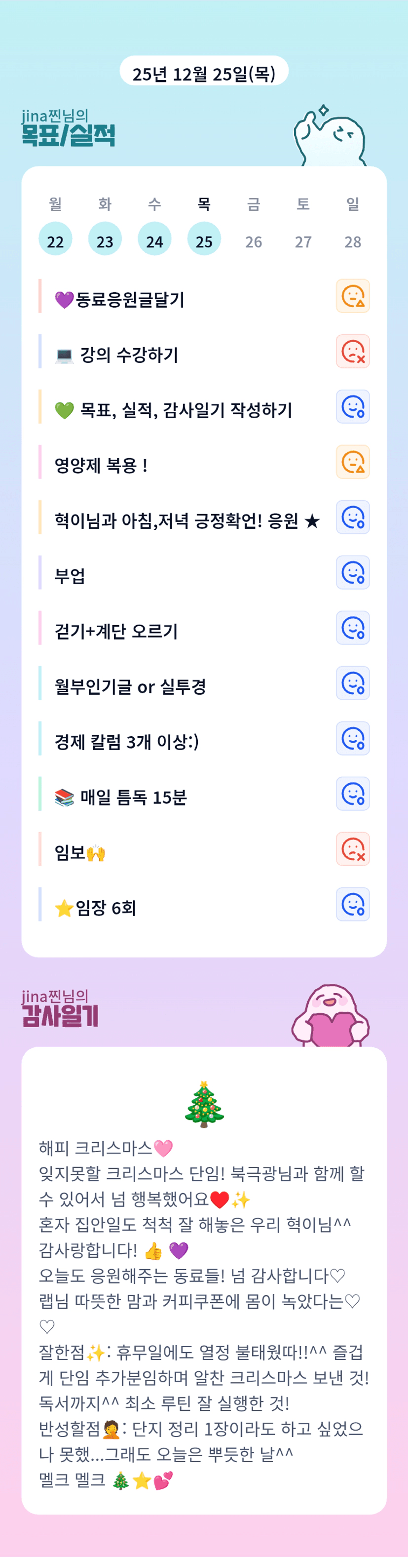 으악 귀여운 미니트리~~~~ 멜크 보냈군요 지나님 ♡ 크리스마스에도 임장이라니.. 월부인 다되었어...