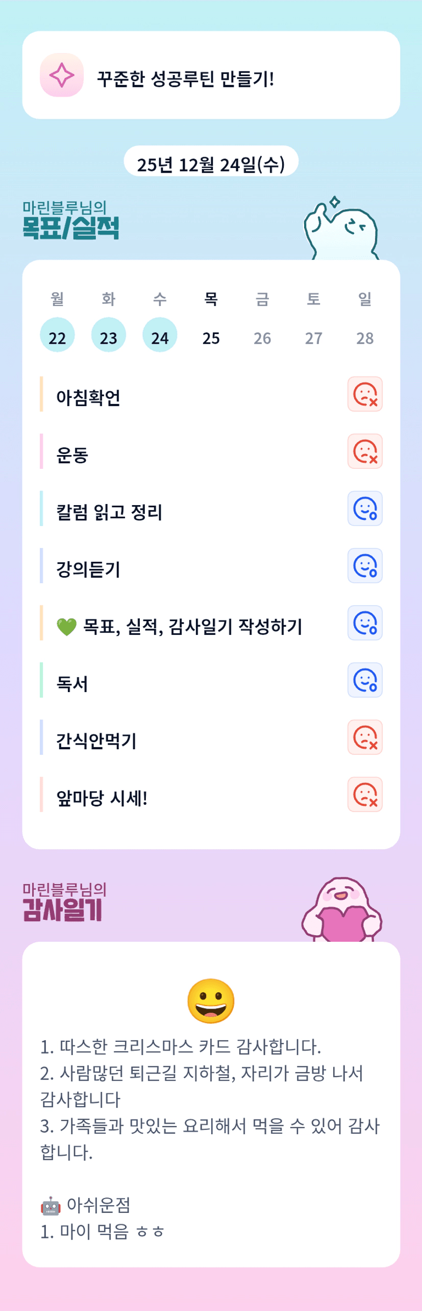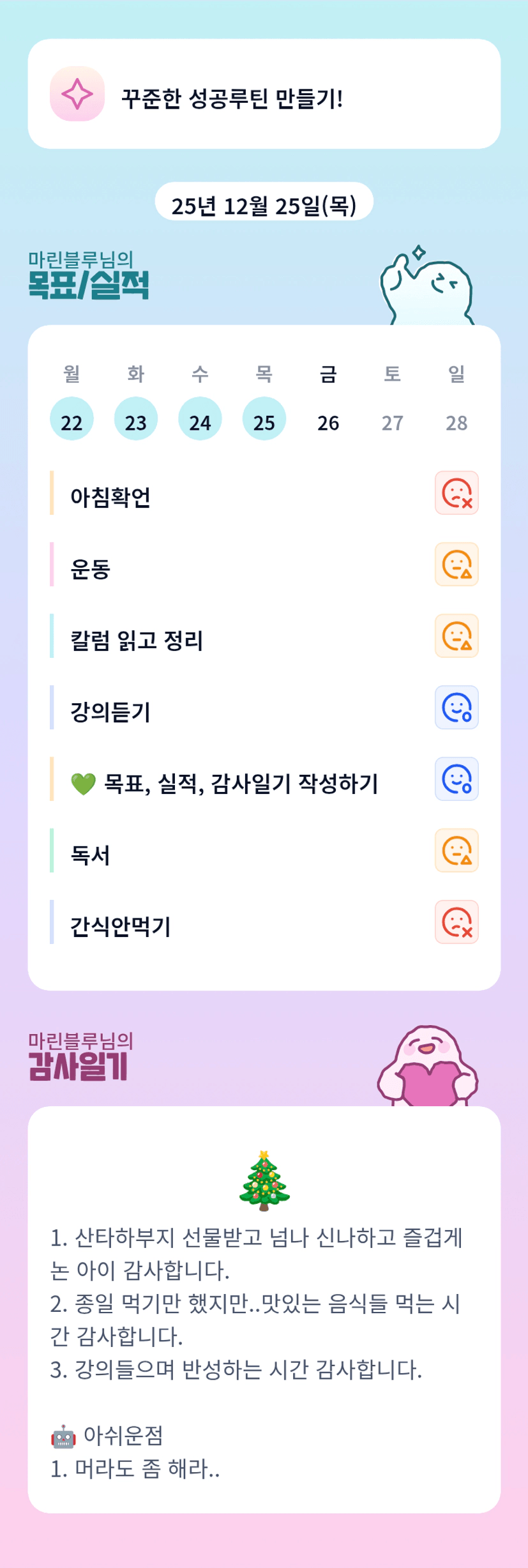 산타하부지...ㅎㅎㅎ 좋아하는 아이보면서 행복한 시간 가지셨을것 같아요 마린님 오늘도 홧팅...저는 오늘 회사에 많은 분들이 연차를 내셔서 한가할것 같습니다 ㅋㅋ