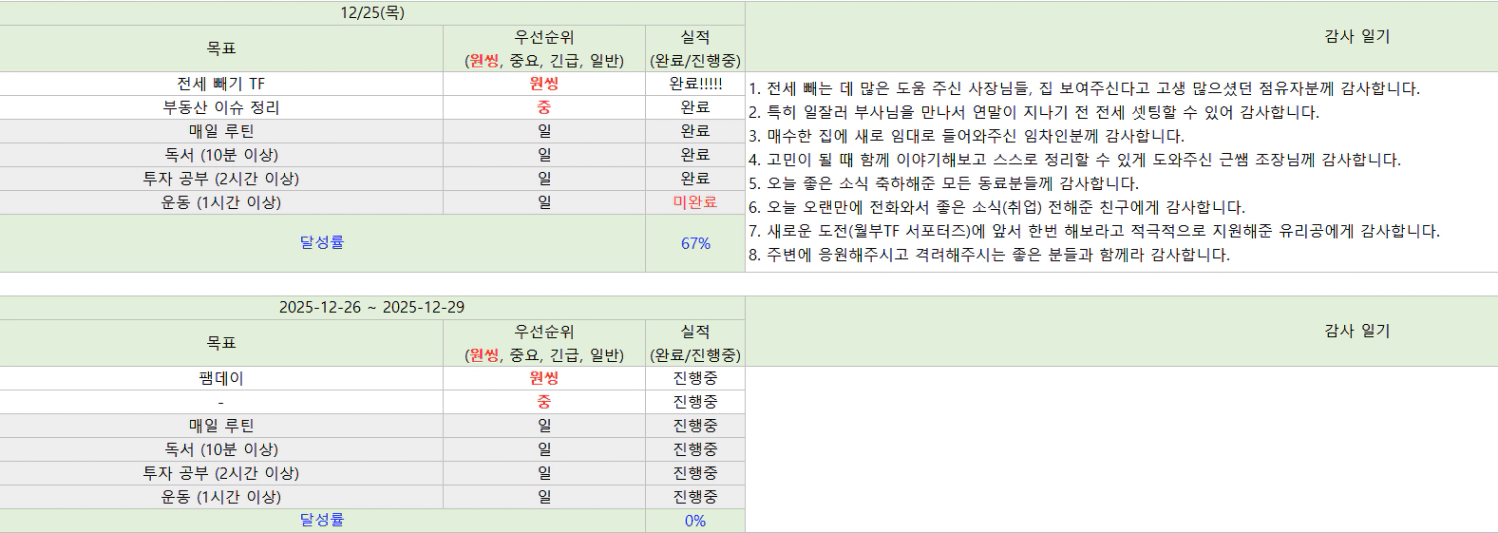🌻12/26 목표, 12/25 실적 & 감사일기