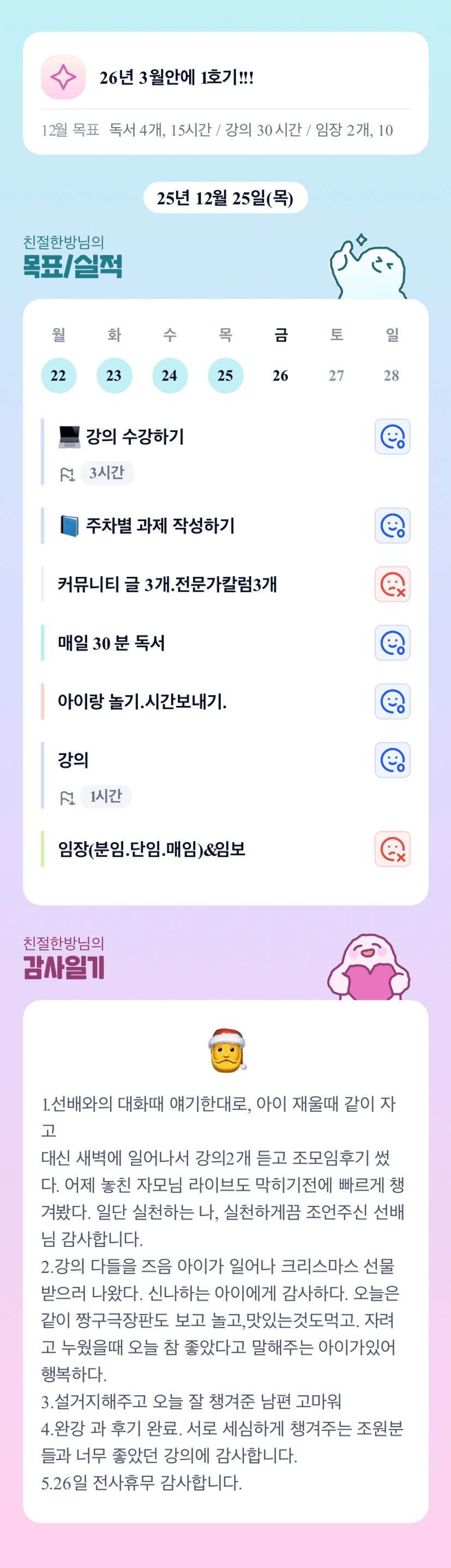 과제도 완료하시고 즐거운 팸데이 보내신 방님! 넘 고생 많으셨어용♡