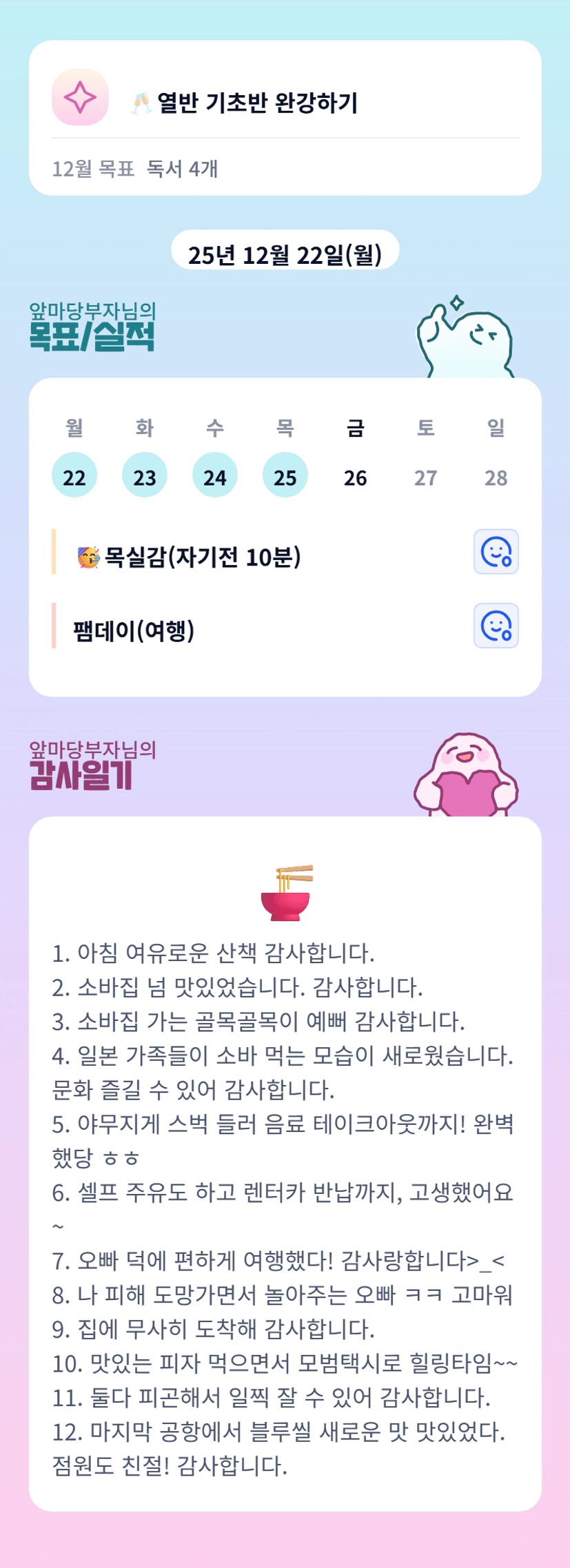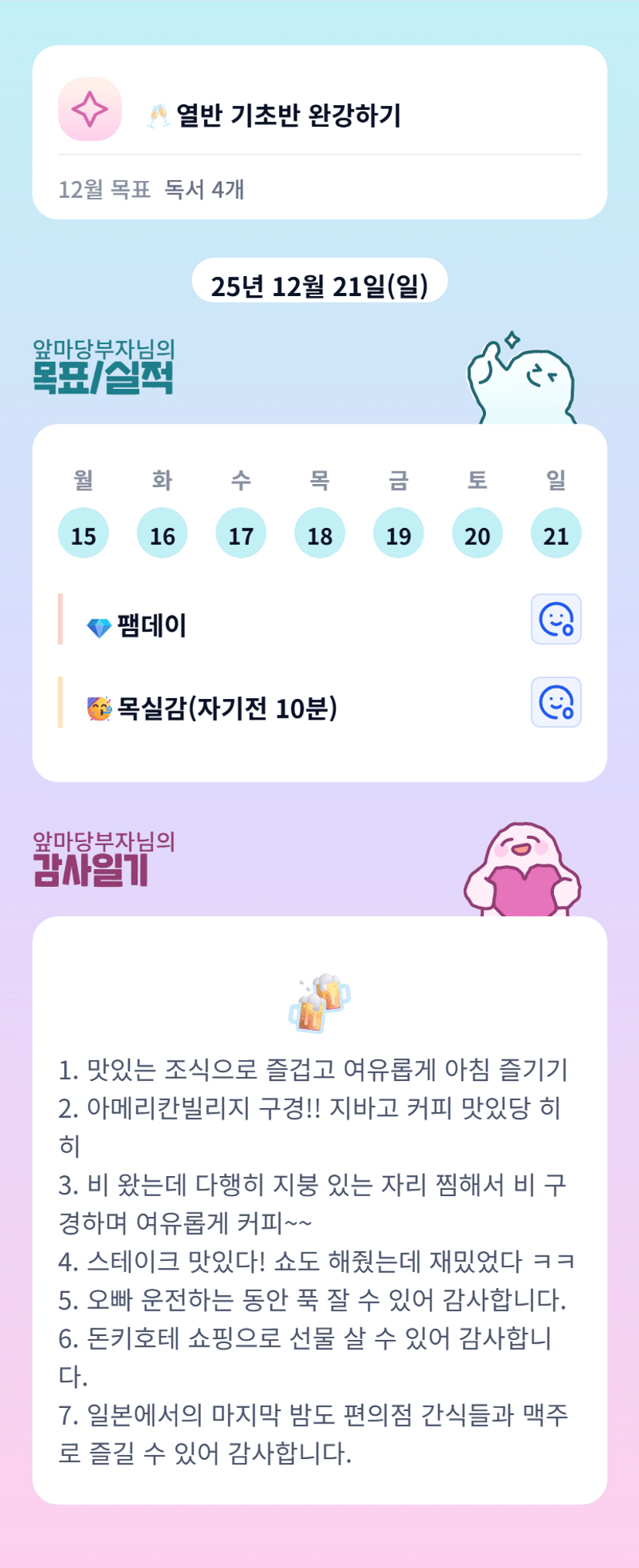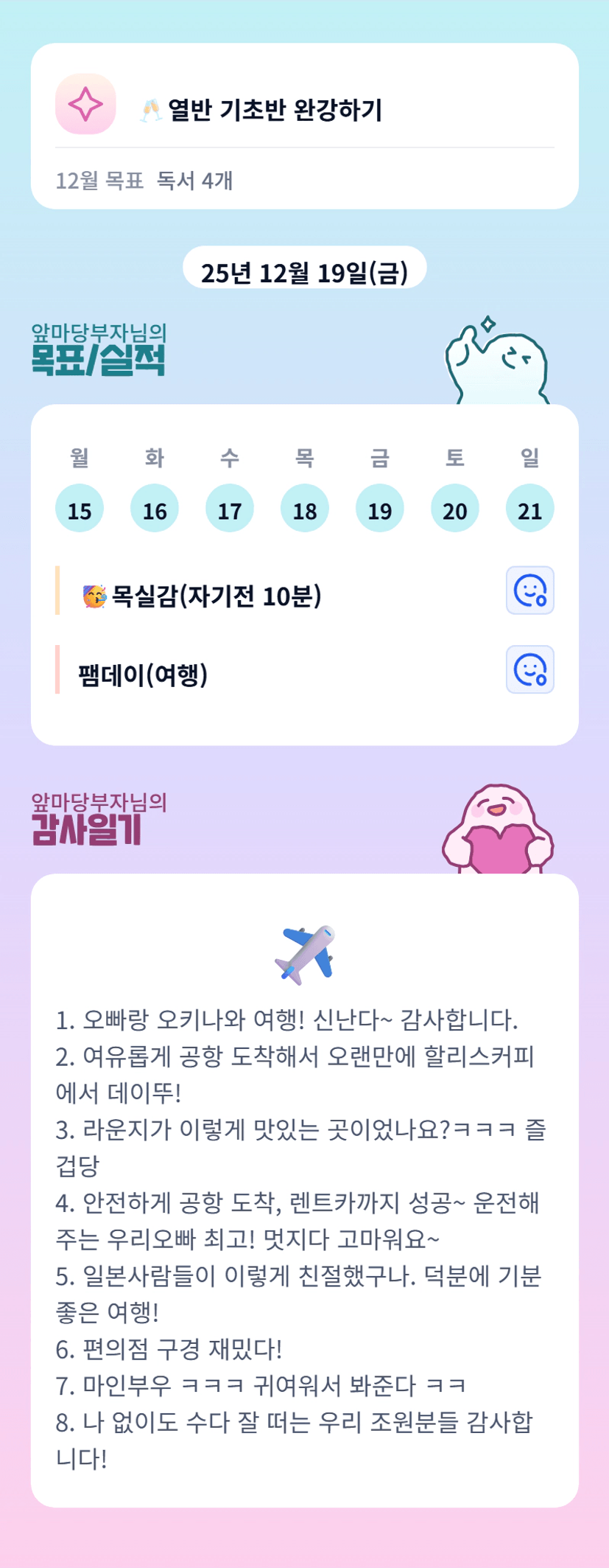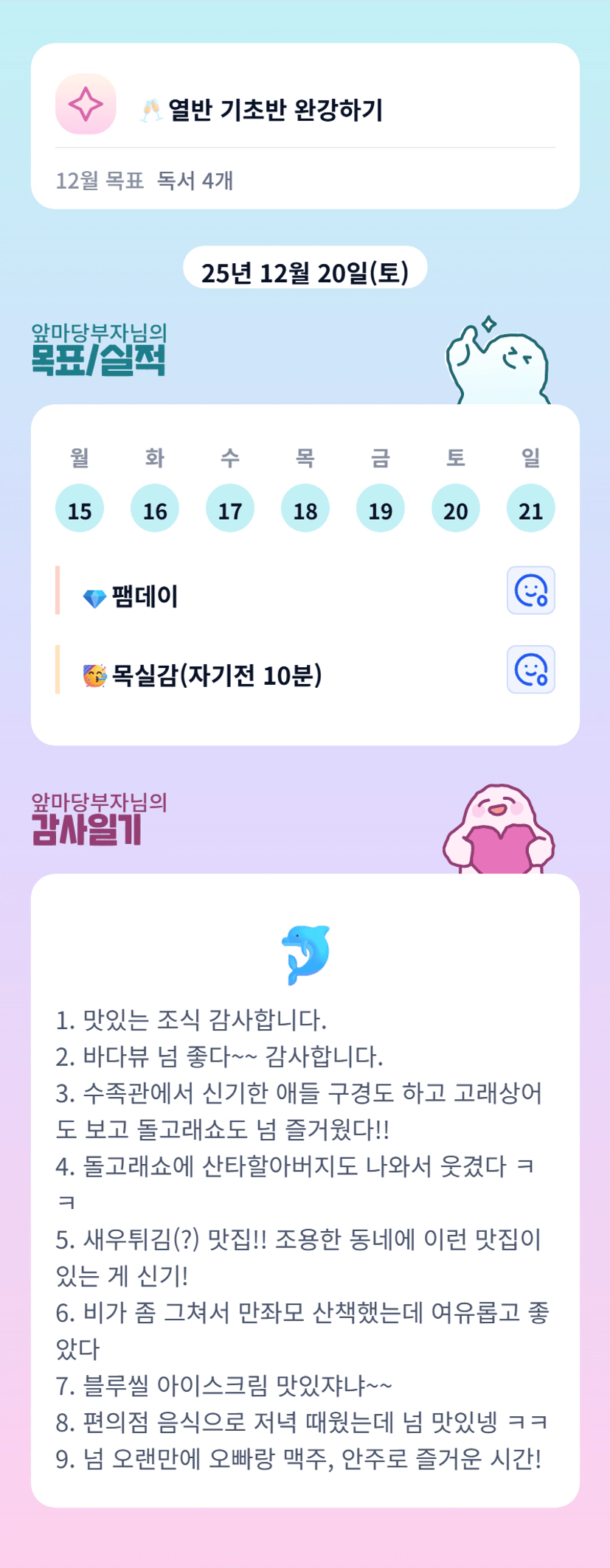 알찬 한주 힐링과 행복으로 가득채우셨네요 오늘도 행복한 하루 보내세요 화이팅입니다 ㅎ