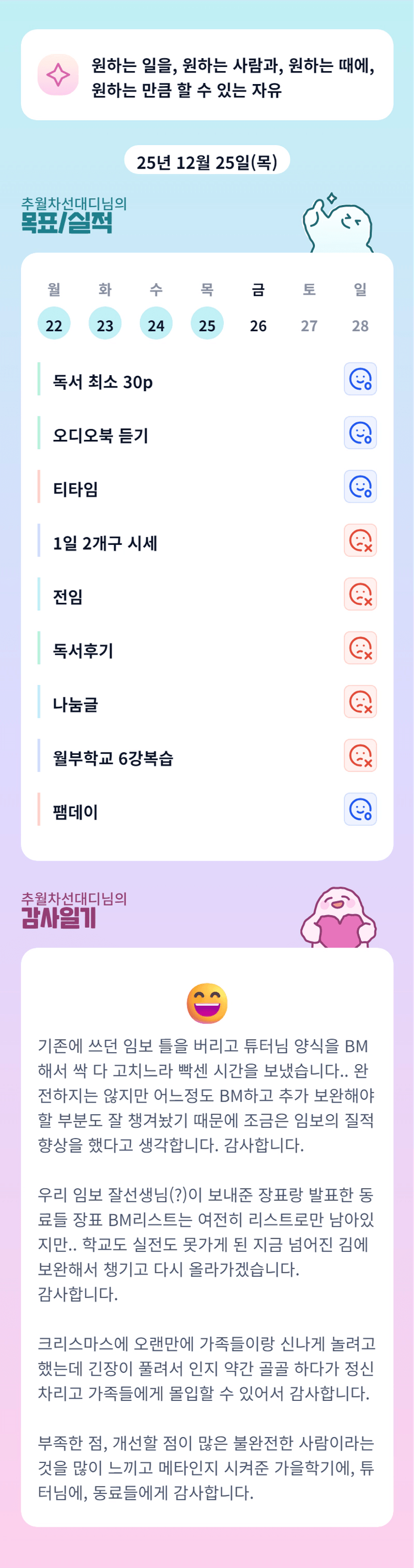 오오 추디님 임보 다시 들춰봐도 되나요?ㅋㅋㅋ 추디님 체력 좋은 줄 알았더니... 조금 안 좋으셨군요 ㅠ 우리 모두 건강합시다!! 고생하셨어요!!!ㅎㅎ 저녁에 뵈어용 :)