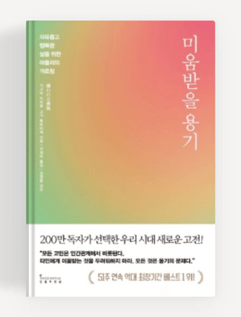 아들러가 말하는 공동체 감각은 타인의 칭찬이나 평가가 아니라, 스스로 ‘나는 누군가에게 도움이 되는 존재다’라고 느끼는 순간 인간은 자신의 가치를 실감하게 되는데, 이는 비교와 경쟁이 아닌 방향의 문제이며, 세계는 누군가에 의해 바뀌는 것이 아니라 지금 이 자리에서의 나의 선택으로만 바뀔 수 있다는 메시지로 이어집니다. 이번에 읽을 때는 이부분이 눈에 들어왔고 그로 인해 이 책은 이번에 지난번과 달리 위로를 건네는 책이라기보다 결단을 요구하는 책이라고 느꼈습니다. 과거와 미래를 핑계로 현재를 미루지 않고, 지금의 나로 살아갈 용기를 가질 수 있는지를 끊임없이 묻는 책입니다. 그 질문이 불편하게 느껴졌고, 그만큼 이 책이 던지는 메시지가 정확하게 닿았다는 증거일 거라고 생각했습니다.