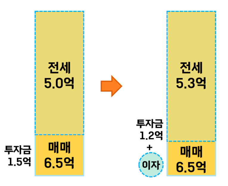 매매 6.5억 / 전세 5.0억으로 투자금이 1.5억이 드는 상황에서