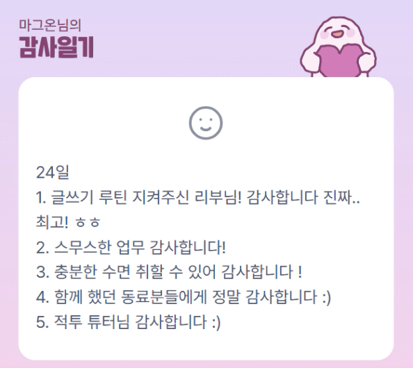 튜터님 에이스 축하드립니다 :D 요즘 날씨 많이 추운데 감기 조심하세요 !!