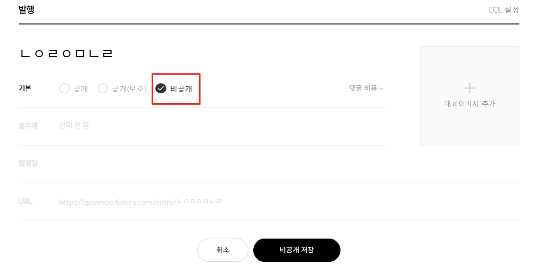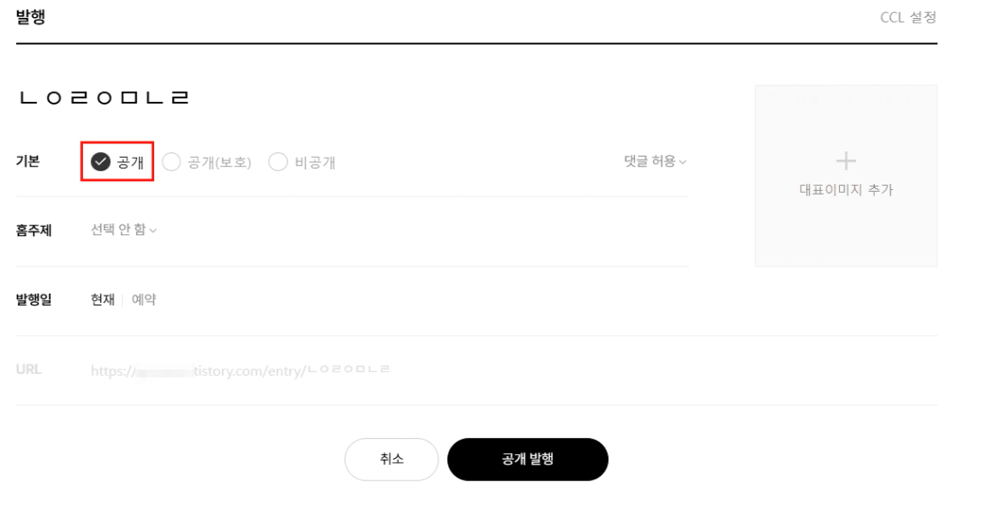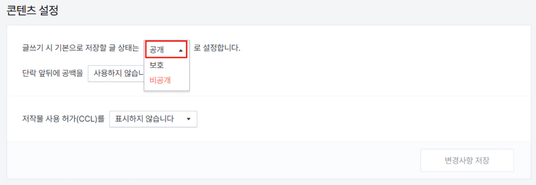 한번만 설정 하면, 글 발행할 때 항상 ‘공개’로 나옵니다!