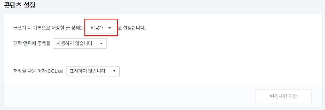 티스토리 글을 발행할 때 ‘비공개’로 되어 있어 매번 변경하기 귀찮으시죠?