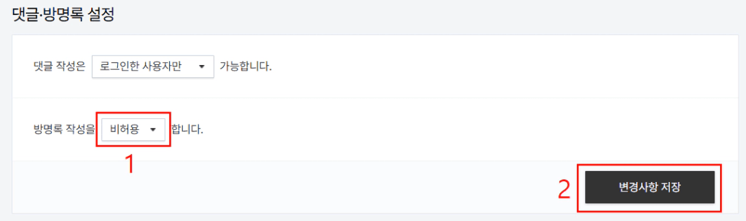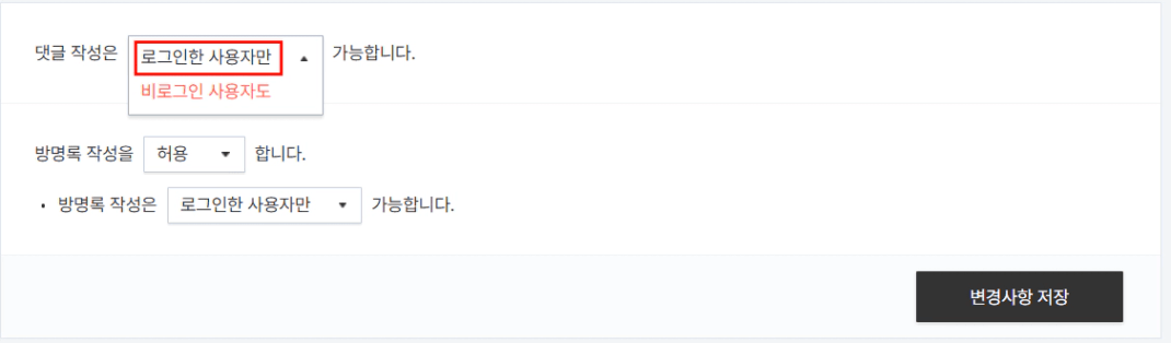 댓글이나 방명록을 아무나 작성할 수 없게 설정이 가능합니다!