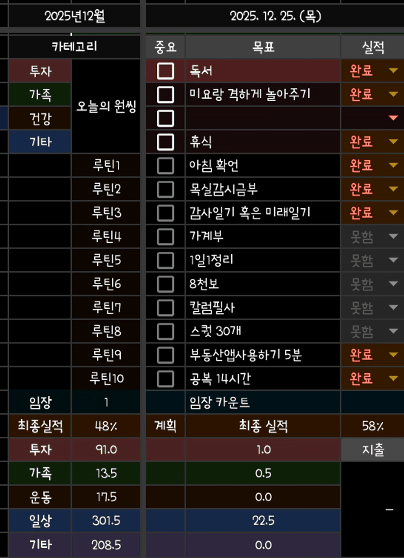 독서 1페이지 이상 O