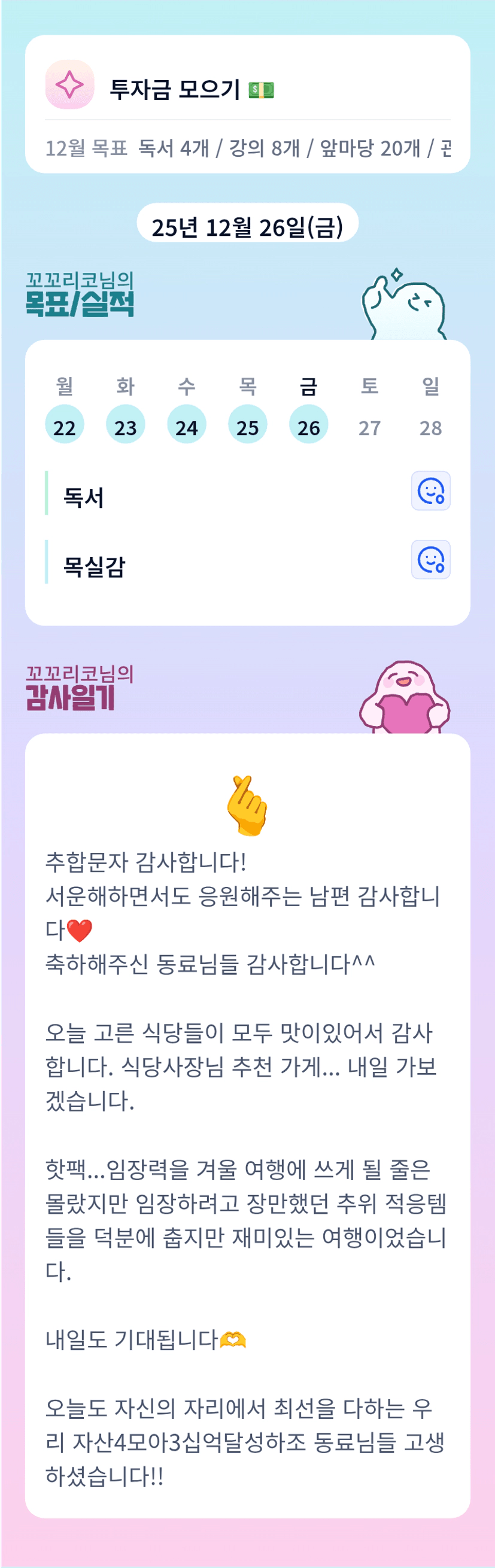 꼬꼬님~ 월학 추가합격 넘넘 축하드려요^^ 완즈이 부럽습니다♡ 모든 일정을 잘 소화하면서 가족 여행도 하고~ 멋져요^^ 월학 가서 많이 배우고 성장하시길 응원드려요:)
