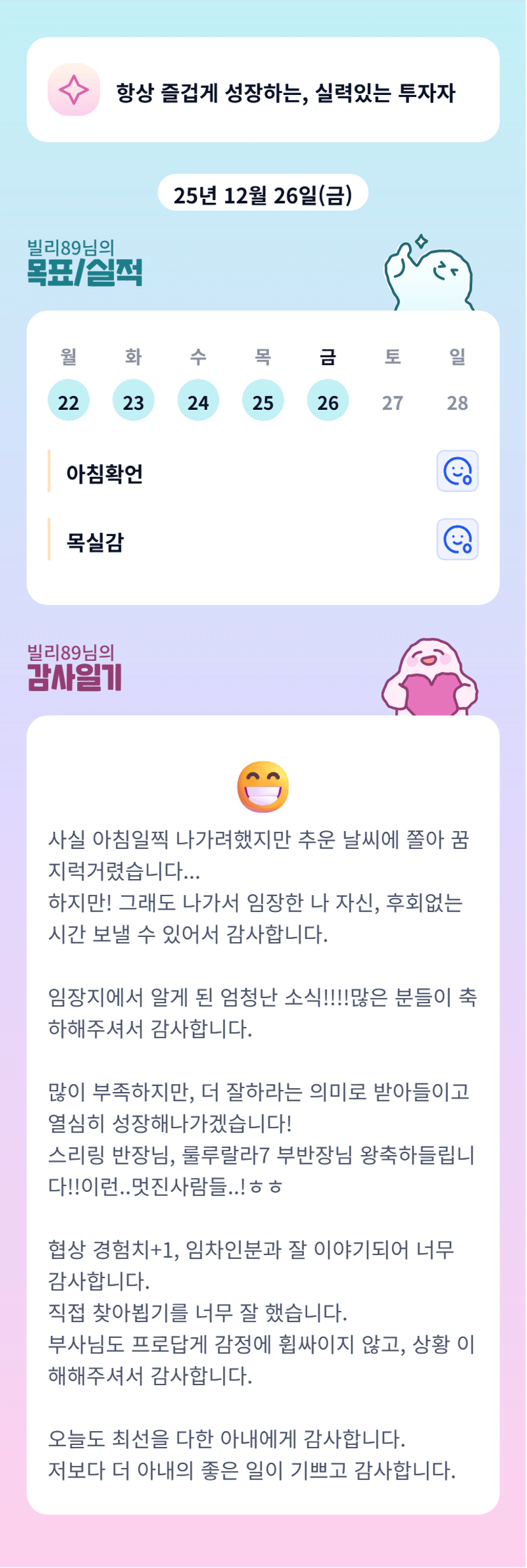 많은 일이 있었지만 하나씩 다 잘 해결되어 다행이에요! MVP 축하드려요~! 다음엔 빌리반장님 가즈아