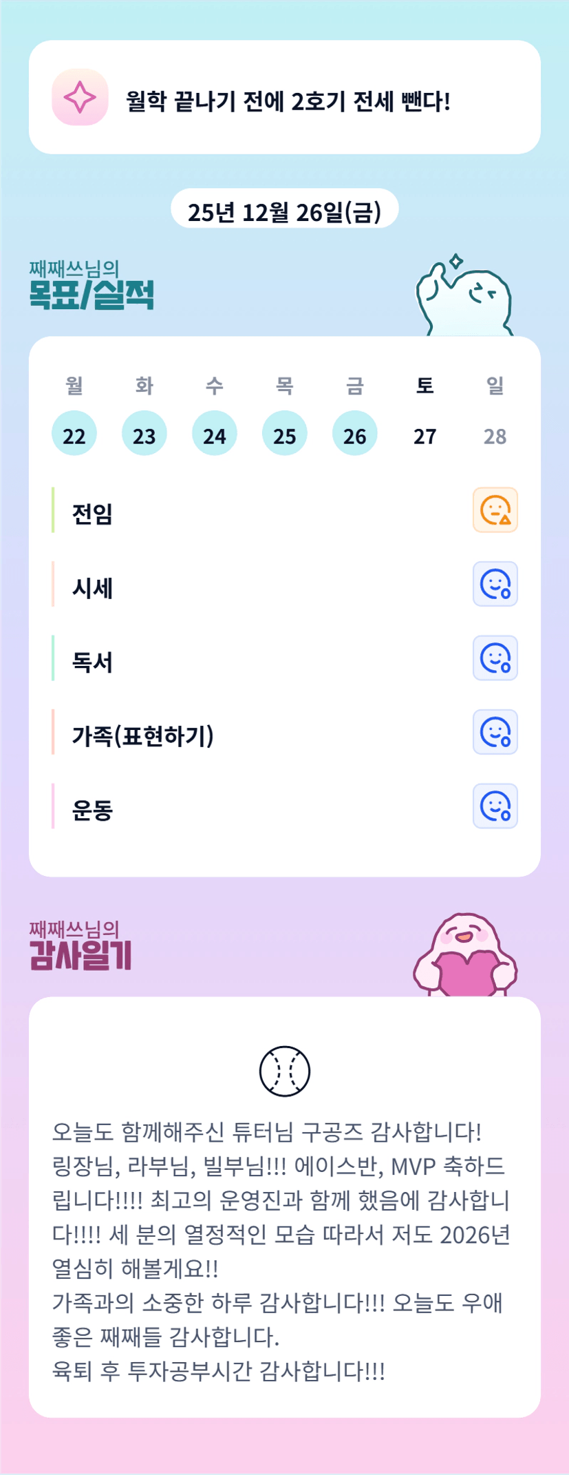26년 열심히하는 째쓰님 가즈아