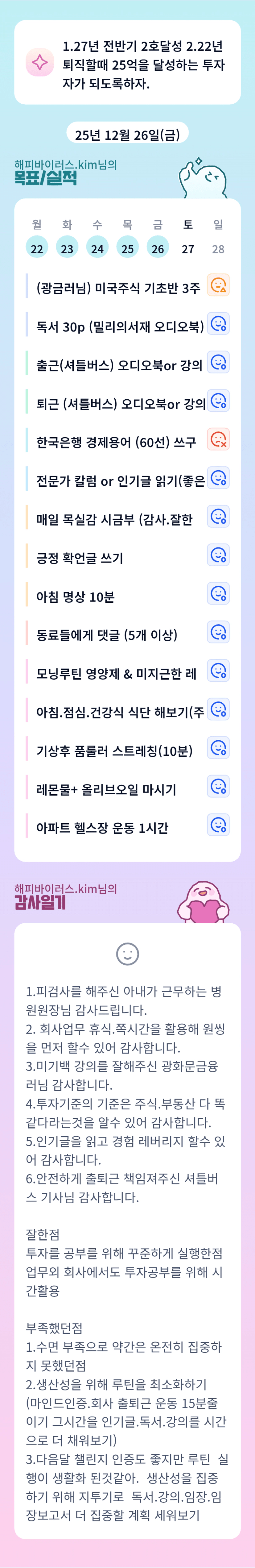 꾸준한 루틴 멋집니다ㅎㅎㅎ고생많으셨어요👍👍👍