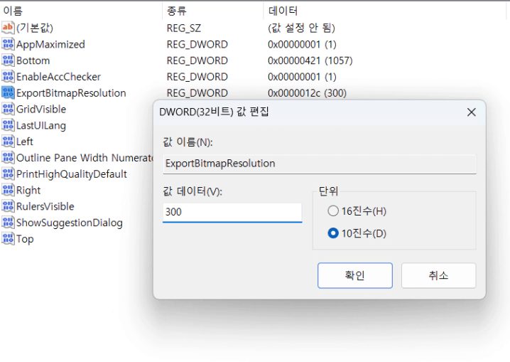 여기서 10진수로 변경하고 원하는 화질에 맞춰 변경합니다.