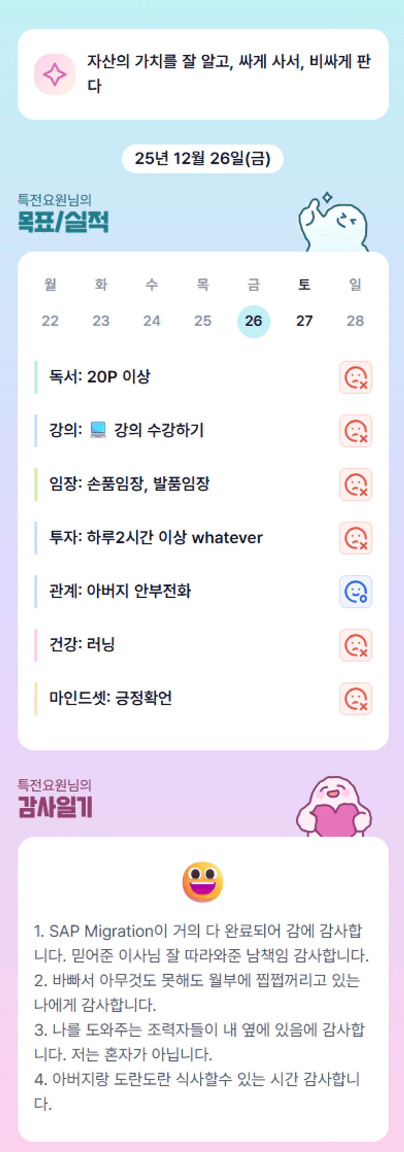 25년 마지막주 주말이네요! 행복한 주말 되세요 요원님🤗